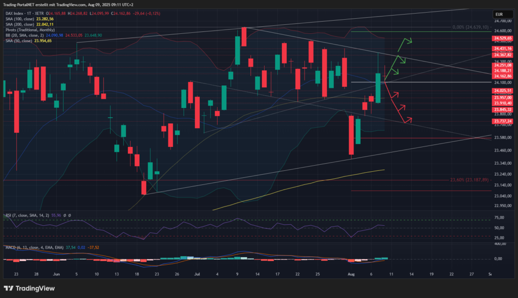 - Oberhalb bleibt der Cluster über die 24.170 zur .250 aktiv. Darüber Chance auf die Widerstandszone 24.350/.370. Bei Bruch folgt nach der 24.430 die weitere Aufhellung zur 24.530 und dem AZH.