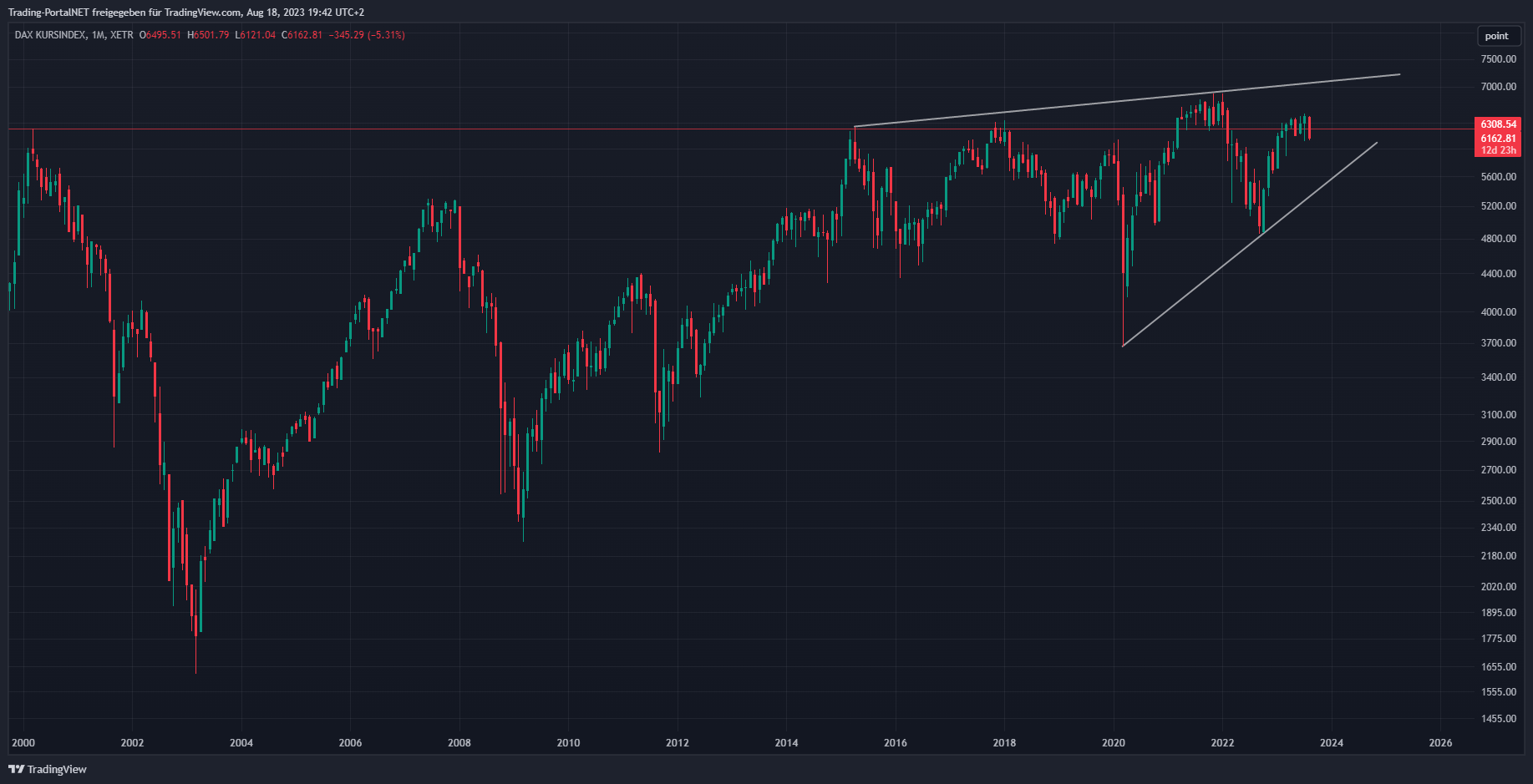 Nachfolgend auch die übergeordneten Bilder im Monatschart (1 Kerze = 1 Monat) und Jahreschart (1 Kerze = 1 Jahr).