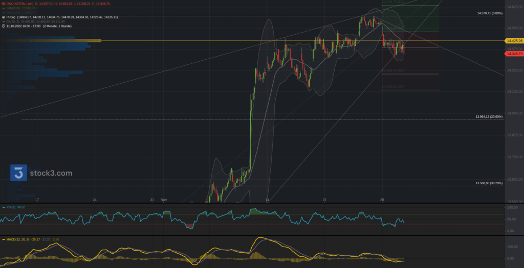 Unterhalb steht hingegen die Spanne zur 14.390 und .230. Darunter die 14.135 und .030. Anschließend die 13.920 und bei Bruch .740/.600.