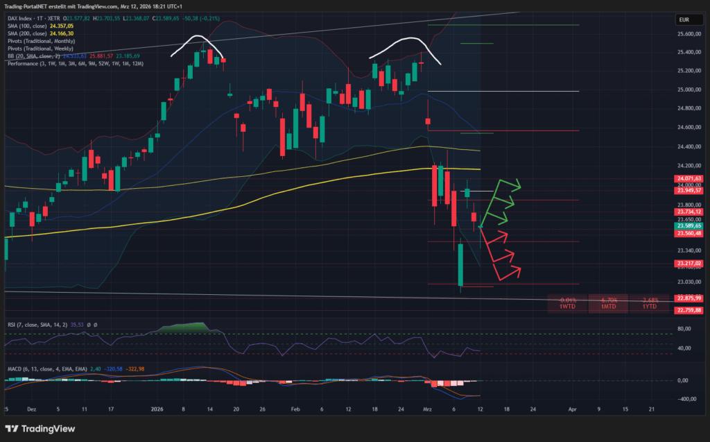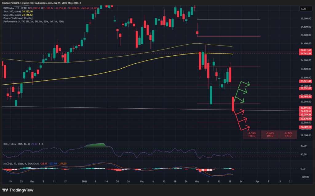 Die Folgen sind inzwischen deutlich sichtbar: Der DAX hat im März in der Spitze rund 10 % verloren, während der S&P 500 erstmals seit 2023 wieder unter seine 200-Tageslinie gefallen ist – ein klares technisches Warnsignal.