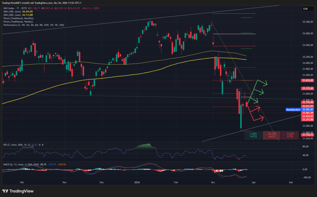 Der Bereich der 22.600 wird die erste relevante Zone darstellen.