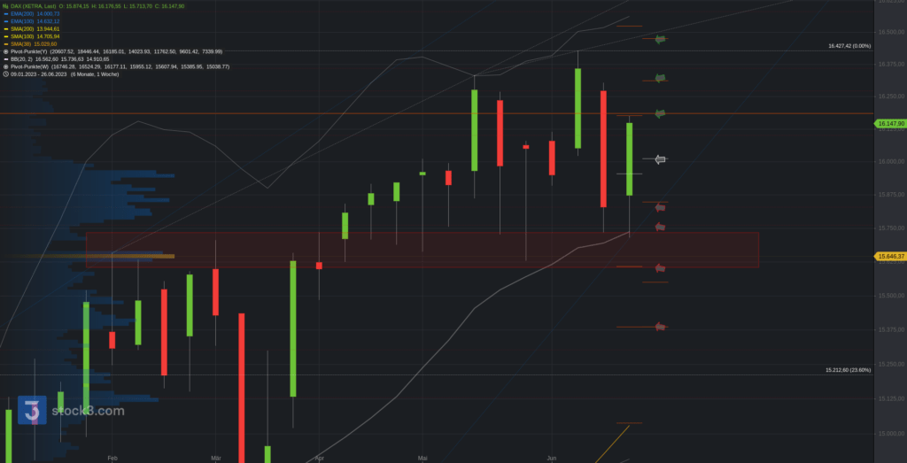 Während der letzten Handelswoche konnten die Märkte ihr bullisches Muster beibehalten. Die bullischen Konsolidierungen wurden wiederholt nach oben aufgelöst, und der DAX konnte erneut seine übergeordnete Unterstützungszone bei 15.700/15.600 Punkten verteidigen. Die neue Handelswoche wird aufgrund des US-Feiertags einen etwas langsameren Start haben, aber es stehen einige wichtige Termine an, darunter das Protokoll der US-Notenbank Fed, der ISM-Index und der US-Arbeitsmarktbericht.