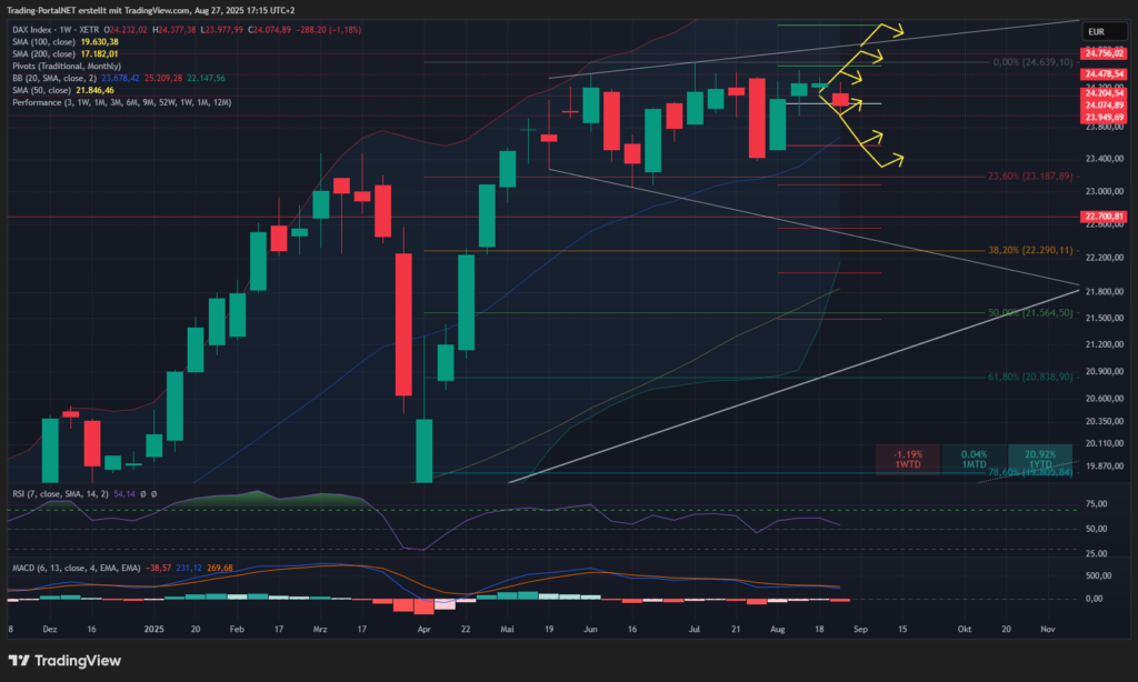 Unterhalb ist der Cluster 24.1 zur 23.950 weiter aktiv. Darunter droht weiterer Abgabedruck zur 23.7/23.6.