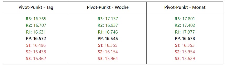 Zum Abschluss noch die neuen Pivot-Punkte für die nächste Woche und den Monat Januar.