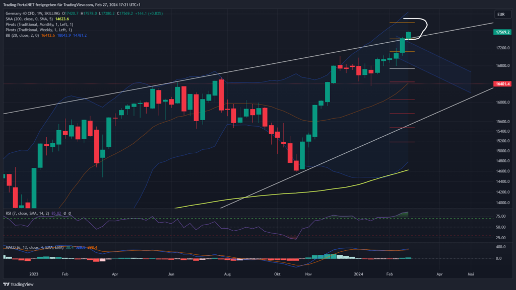 Die Aktienmärkte zeigten sich am Mittwoch weiterhin abwartend, was teilweise auf den Mangel an signifikanten Impulsen vom Wirtschaftskalender zurückzuführen war. Der DAX setzte seine beeindruckende Serie fort und erreichte nun fünf Tage in Folge ein neues Rekordhoch, auch wenn an der Marke von 17.600 Punkten eine leichte Zurückhaltung zu spüren ist. An der Wall Street hingegen setzten die US-Indizes ihre Konsolidierung innerhalb eines bullischen Musters fort, wobei noch offen bleibt, ob sich der bullische Trend fortsetzt oder ob die Bären die Oberhand gewinnen.