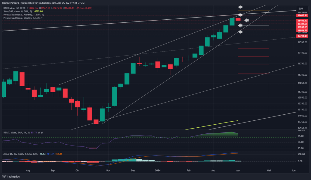 Der Blick zum kurzfristigen Chartbild, um die untergeordneten Marken besser zu erkennen.