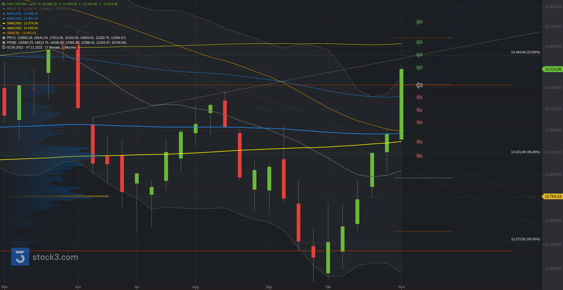 Oberhalb ist ein Cluster zur 14.230 aktiv. Darüber die Erweiterung zur 14.390. Bei Bruch 14.440 und .550. Anschließend Türöffner zur 14.8.