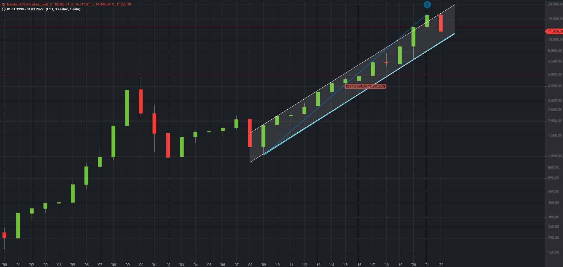 Nachfolgend auch die übergeordneten Bilder im Monatschart (1 Kerze = 1 Monat) und Jahreschart (1 Kerze = 1 Jahr).