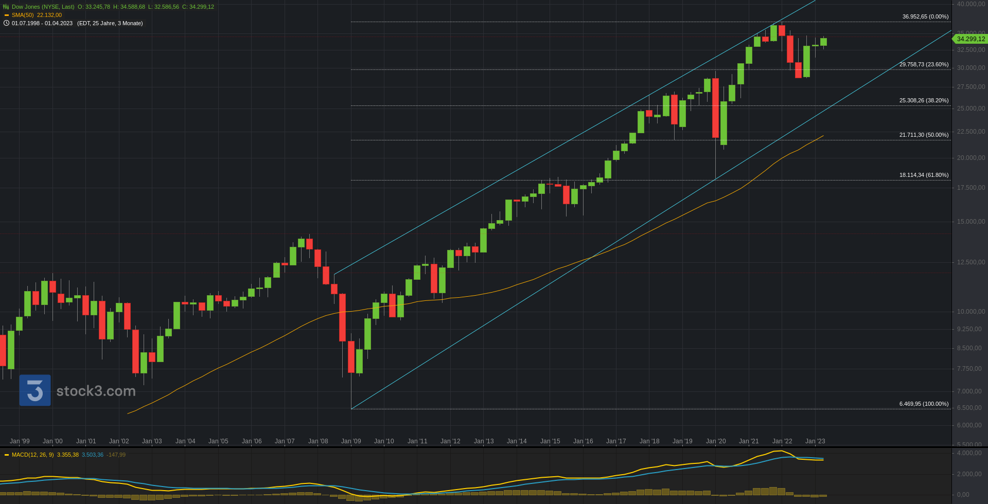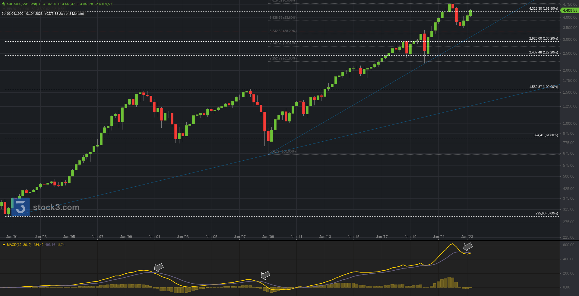 Nachfolgend auch die übergeordneten Bilder im Monatschart (1 Kerze = 1 Monat) und Jahreschart (1 Kerze = 1 Jahr).