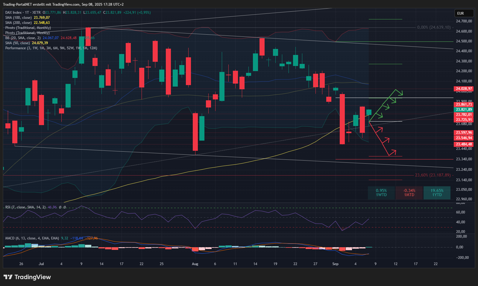 - Unterstützungen: 23.600 > 23.550 > 23.500 > 23.480 > 23.370 > 23.340 > 23.300 > 23.230 > 23.180 > 23.150