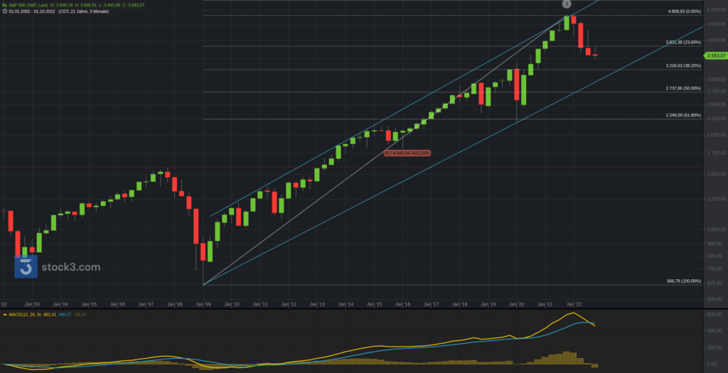 Ein kurzer Blick in den US-Markt (Komplette Updates für den US-Markt gibt es auf Trading-Portal.NET – Premium) ins übergeordnete Bild. Der S&P500 kann sich nun die dritte Woche nicht vom sma200 (weekly) an der 3.600 lösen. Dieser Bereich stellt weiterhin eine wichtige Supportzone. Oberhalb ist eine Spanne zur 3.700 und 3.750 weiterhin aktiv. Darüber die Fortsetzung zur 3.815 und 3.850. Unterhalb drohen die weitere Eintrübung und Range zur 3.505. Darunter 3.440 und 3.390.