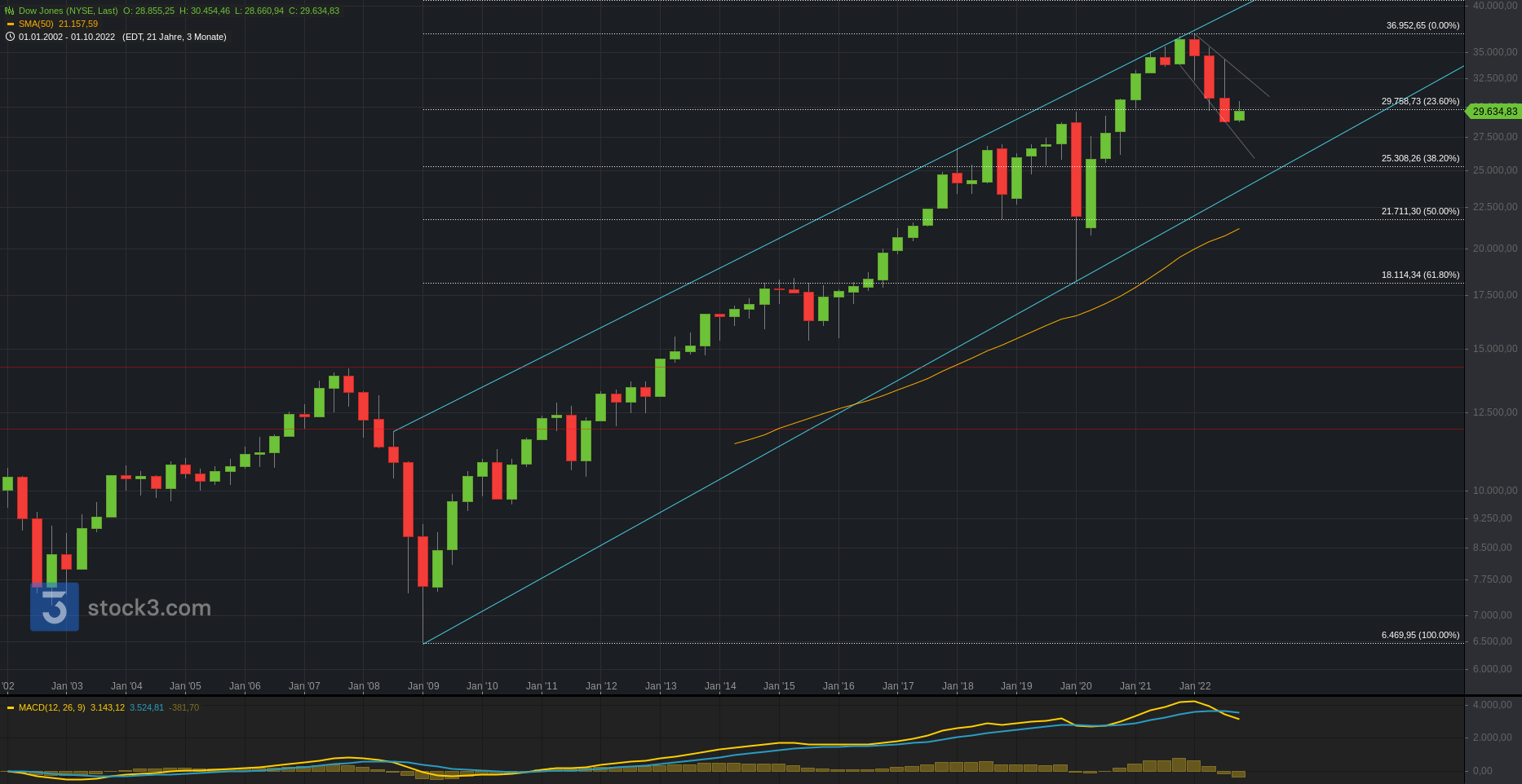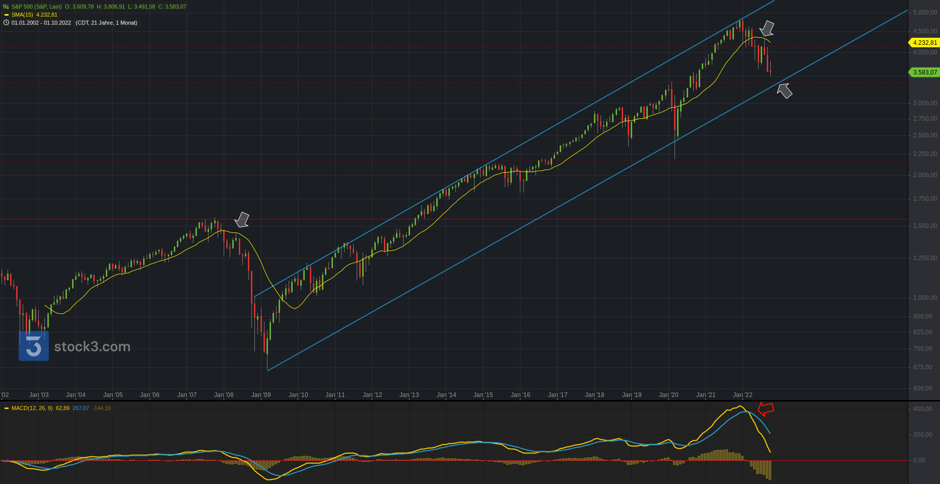 Nachfolgend auch die übergeordneten Bilder im Monatschart (1 Kerze = 1 Monat) und Jahreschart (1 Kerze = 1 Jahr).