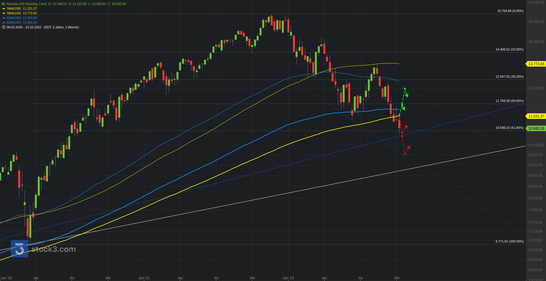Die Aktienmärkte durchlebten eine hochvolatile Handelswoche. Die Bullen versuchten zur Wochenmitte im sehr negativen Marktumfeld einen Short-Squeeze, welcher jedoch abermals keine Anschlusskäufer finden konnte. Die großen Indizes an der Wall Street verbleiben somit weiterhin sehr nah an ihren wichtigen Unterstützungszonen. Entscheidung vertagt.