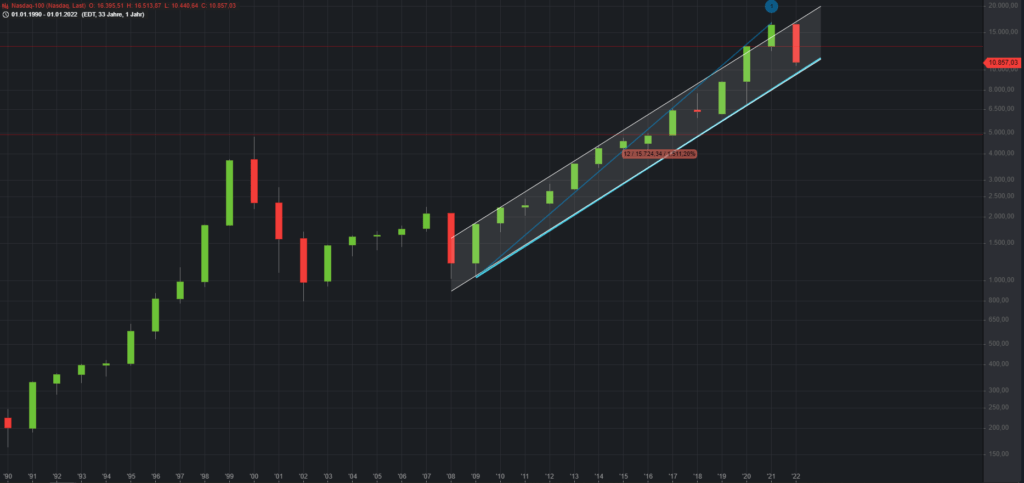 Nachfolgend auch die übergeordneten Bilder im Monatschart (1 Kerze = 1 Monat) und Jahreschart (1 Kerze = 1 Jahr).