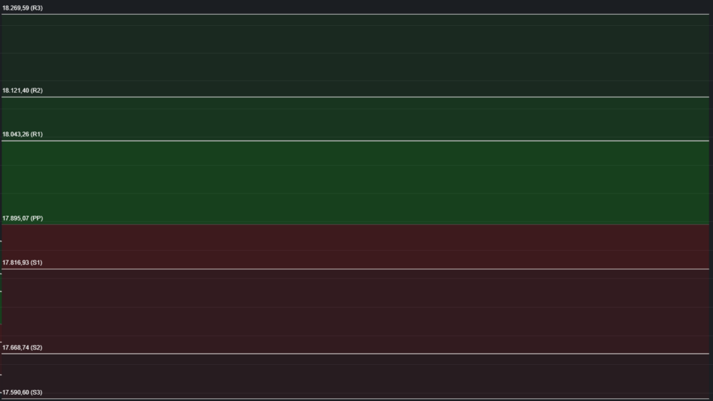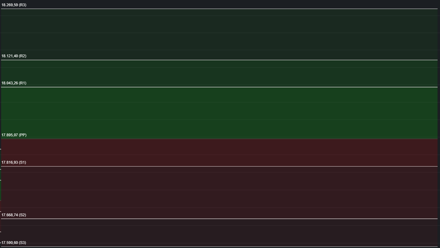 Die Pivot-Punkte dienen als technische Analysewerkzeuge für Händler, um potenzielle Unterstützungs- und Widerstandsniveaus für die jeweiligen Indizes zu identifizieren. Sie werden täglich berechnet und können für kurzfristige Handelsentscheidungen nützlich sein. Pivot-Punkte werden anhand der Hoch-, Tief- und Schlusskurse des Vortages berechnet und dienen dazu, mögliche Wendepunkte für die Kursbewegungen der Indizes zu prognostizieren. Wenn der Kurs eines Index über dem Pivot-Punkt liegt, kann dies als ein bullisches Signal interpretiert werden, das auf eine mögliche Fortsetzung des Aufwärtstrends hindeutet. Liegt der Kurs hingegen unter dem Pivot-Punkt, deutet dies auf eine mögliche Umkehr des Abwärtstrends hin.