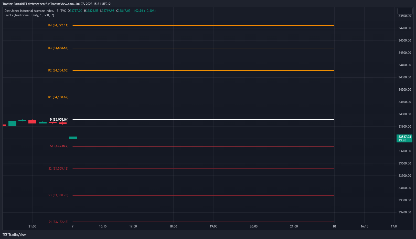 Pivot-Punkte S&P500, Dow Jones und Nasdaq100 – 07.07.