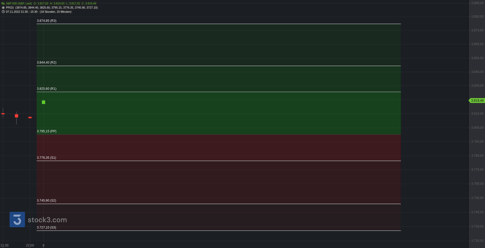 Pivot-Punkte S&P500, Dow Jones und Nasdaq100 – 08.11.