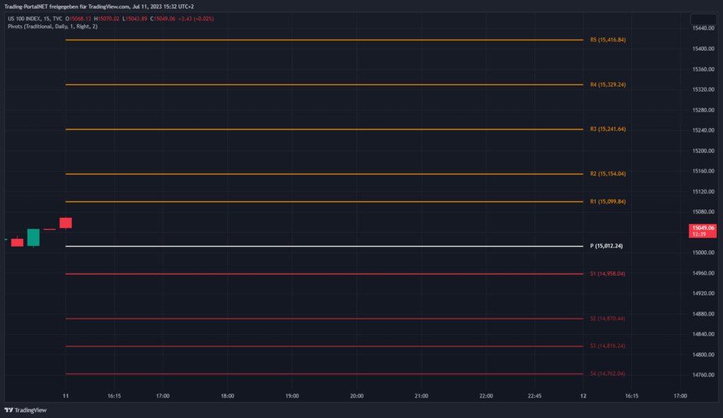 Die Pivot-Punkte dienen als technische Analysewerkzeuge für Händler, um potenzielle Unterstützungs- und Widerstandsniveaus für die jeweiligen Indizes zu identifizieren. Sie werden täglich berechnet und können für kurzfristige Handelsentscheidungen nützlich sein. Pivot-Punkte werden anhand der Hoch-, Tief- und Schlusskurse des Vortages berechnet und dienen dazu, mögliche Wendepunkte für die Kursbewegungen der Indizes zu prognostizieren. Wenn der Kurs eines Index über dem Pivot-Punkt liegt, kann dies als ein bullisches Signal interpretiert werden, das auf eine mögliche Fortsetzung des Aufwärtstrends hindeutet. Liegt der Kurs hingegen unter dem Pivot-Punkt, deutet dies auf eine mögliche Umkehr des Abwärtstrends hin.