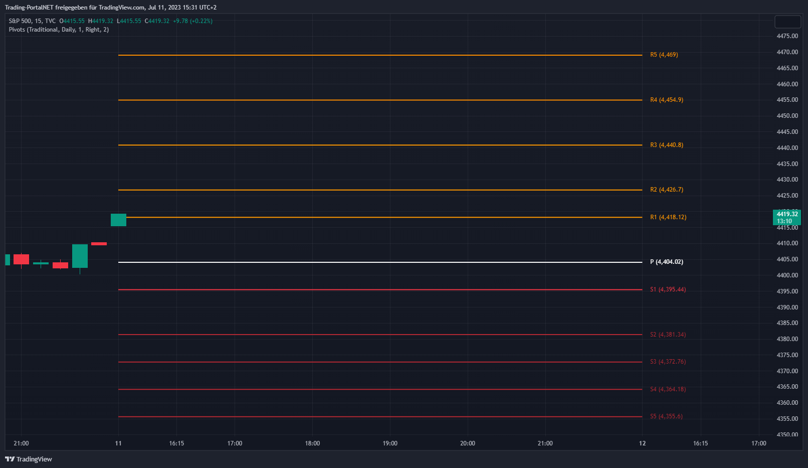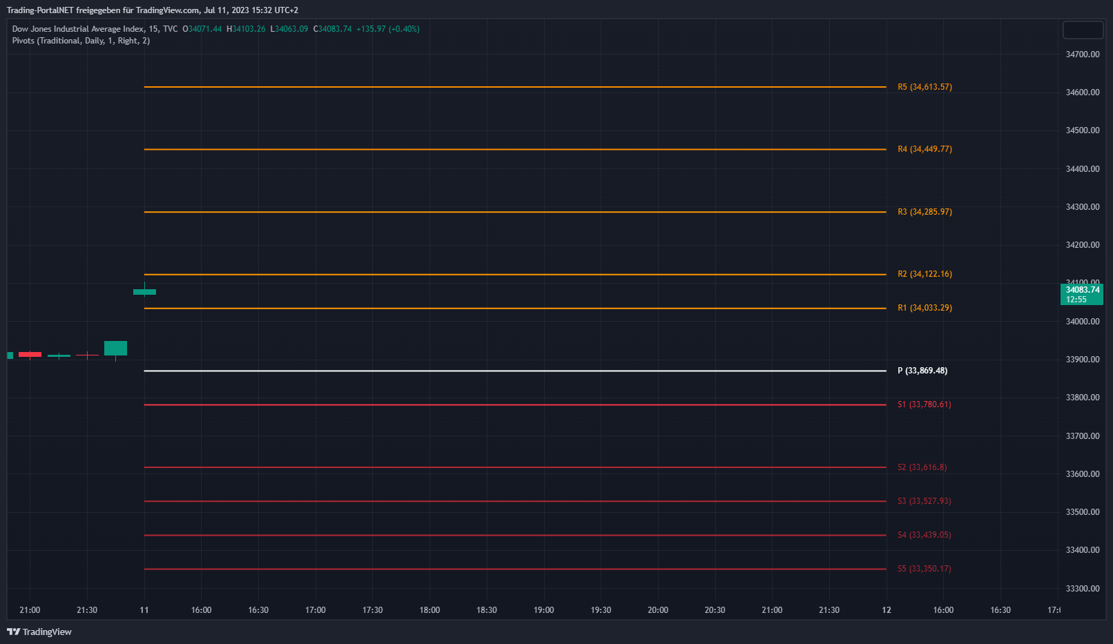 Die Pivot-Punkte dienen als technische Analysewerkzeuge für Händler, um potenzielle Unterstützungs- und Widerstandsniveaus für die jeweiligen Indizes zu identifizieren. Sie werden täglich berechnet und können für kurzfristige Handelsentscheidungen nützlich sein. Pivot-Punkte werden anhand der Hoch-, Tief- und Schlusskurse des Vortages berechnet und dienen dazu, mögliche Wendepunkte für die Kursbewegungen der Indizes zu prognostizieren. Wenn der Kurs eines Index über dem Pivot-Punkt liegt, kann dies als ein bullisches Signal interpretiert werden, das auf eine mögliche Fortsetzung des Aufwärtstrends hindeutet. Liegt der Kurs hingegen unter dem Pivot-Punkt, deutet dies auf eine mögliche Umkehr des Abwärtstrends hin.