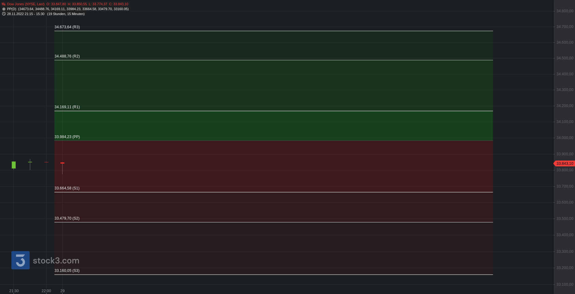 Pivot-Punkte S&P500, Dow Jones und Nasdaq100 – 29.11.