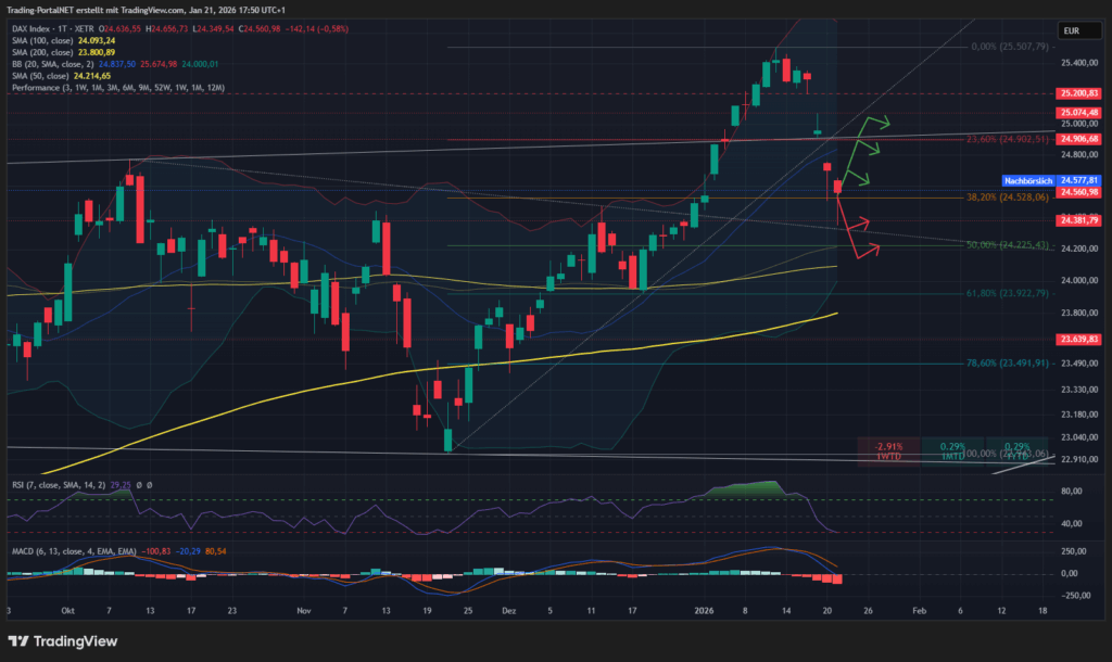 Als Unsicherheitsfaktor bleibt jedoch die neu gesetzte Zollfrist bestehen: 10 % Zölle ab dem 01.02. für acht europäische Länder. Ein Aufschub oder eine Absage könnte eine größere Erholung auslösen; bleibt es dabei, wirkt das Thema weiter belastend.