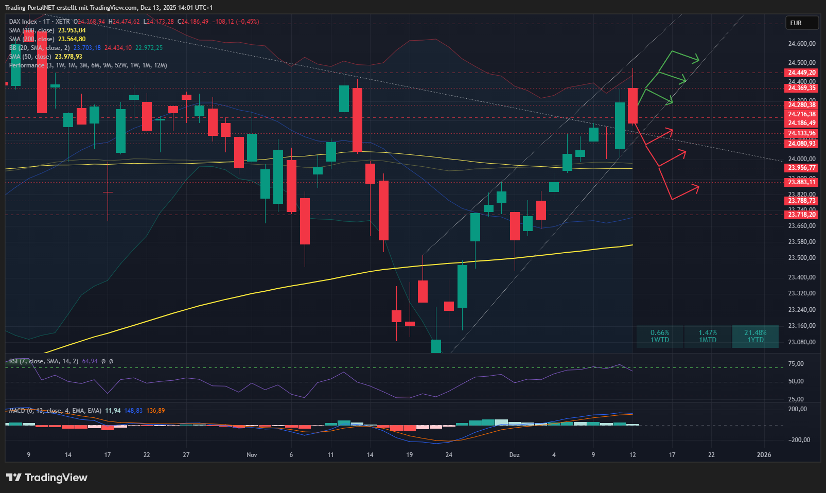 Der Dow Jones konnte sich hingegen als klarer Outperformer absetzen und ein neues Allzeithoch markieren. Der DAX folgte dieser Stärke zeitweise und näherte sich dem Hoch um bis zu 1,5 Prozent an, bevor am Freitag leichte Schwäche einsetzte. Wichtige Unterstützungen blieben dabei jedoch intakt.