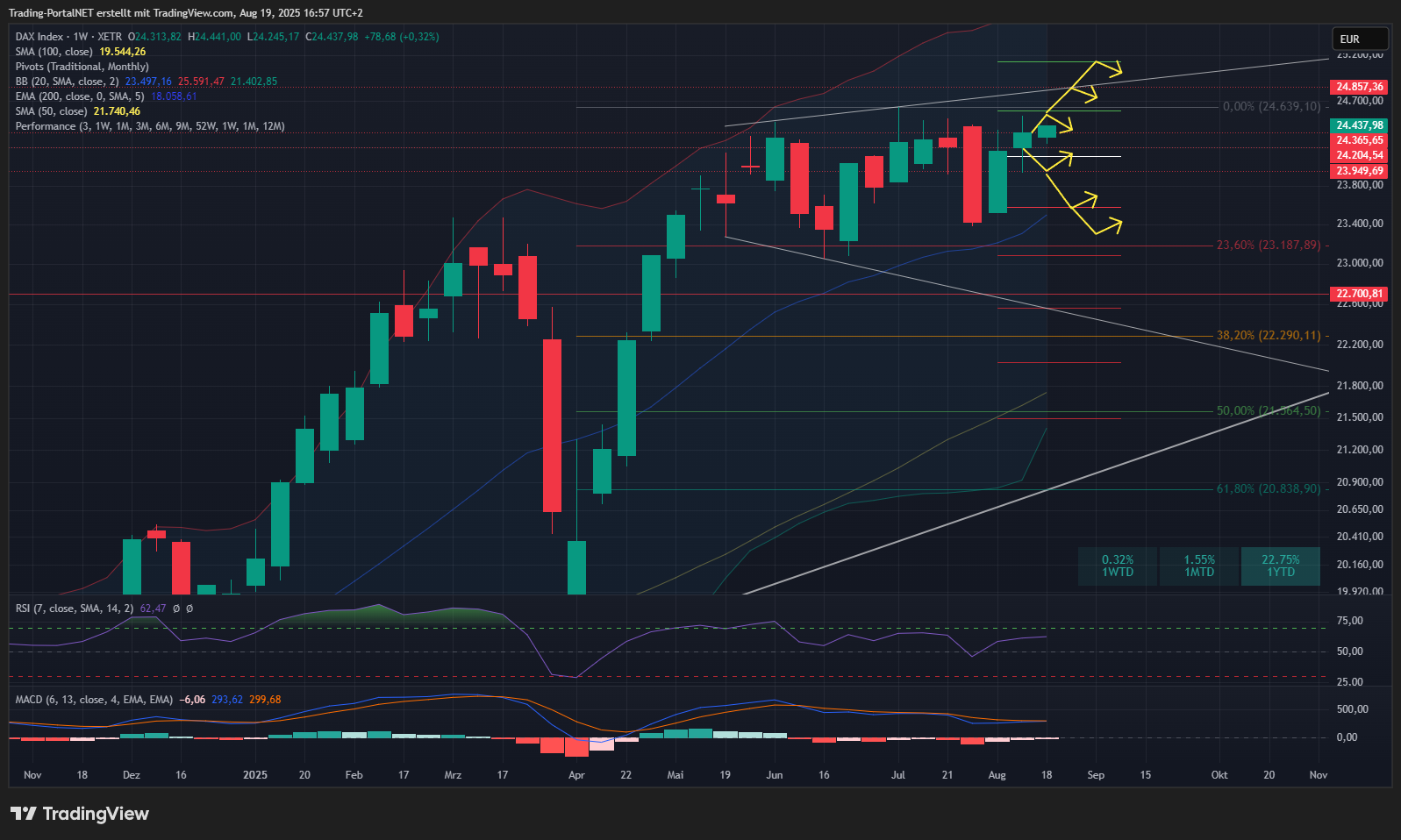 - Widerstände: 24.350 > 24.420 > 24.490 > 24.540 > 24.610 > 24.650 > 24.700 > 24.800 > 24.850