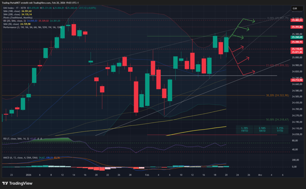 Zusätzlich herrscht erhebliche Unsicherheit über mögliche Rückzahlungen bereits eingezogener Zölle. Diese juristische und politische Gemengelage dürfte in den kommenden Tagen für zusätzliche Volatilität sorgen. Der Februar macht seinem Ruf als nervöser Börsenmonat erneut alle Ehre.