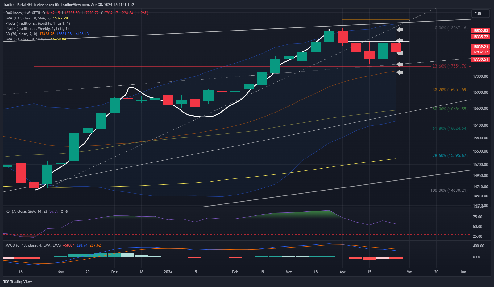 Die Aktienmärkte erlebten am Dienstag eine ersten Abpraller an einer wichtigen Widerstandszone, was den Abschluss eines verlustreichen Aprils für die Indizes markierte. Der DAX ließ eine potenzielle bullische Umkehrformation (iSKS) ungenutzt und steht nun erneut unter Druck, was die Unsicherheit unter den Investoren widerspiegelt. Die bisherige Erholung reichte lediglich bis zur Ausbruchszone, was darauf hindeutet, dass die Bullen nicht genug Kraft hatten, um einen nachhaltigen Aufwärtstrend zu etablieren.