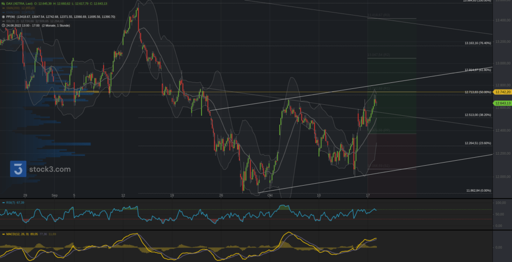 Oberhalb können die Bullen einen Cluster zur 12.515 anstreben. Darüber die Bewegung zur 12.670 und .740. Bei Bruch weitere Erholung zur 12.940 und 13.050.