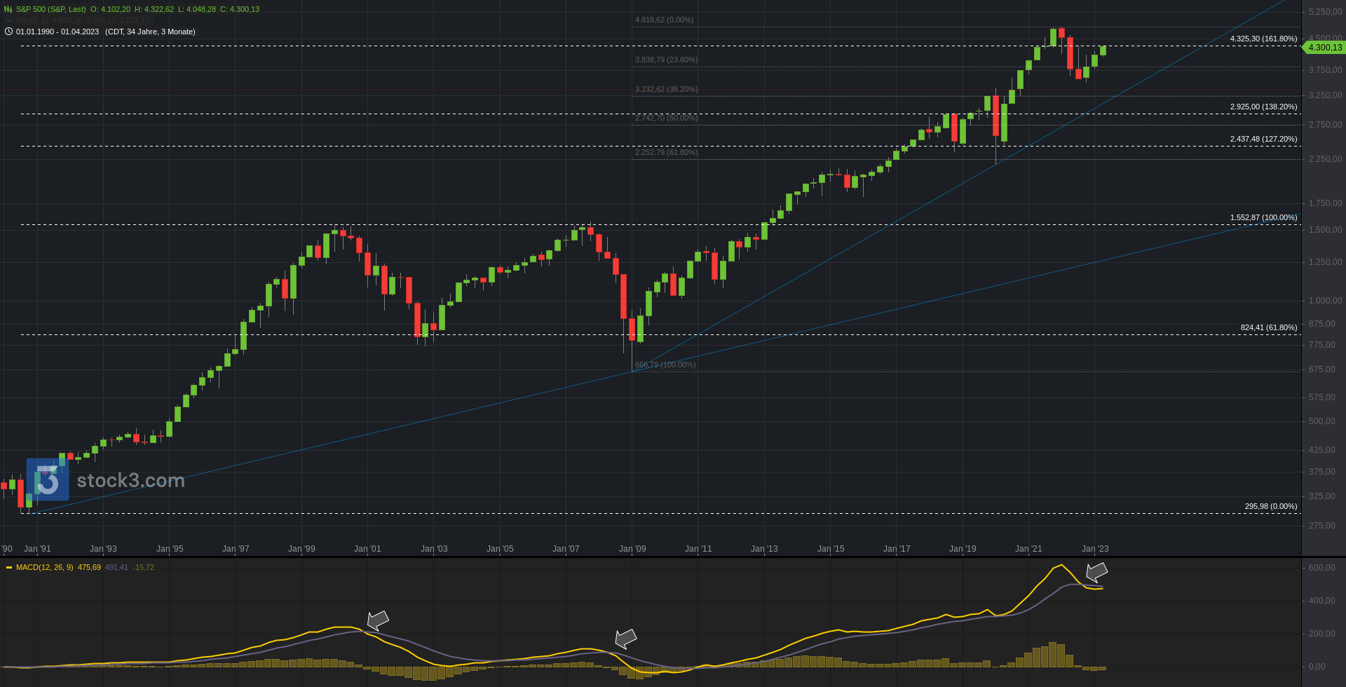 Nachfolgend auch die übergeordneten Bilder im Monatschart (1 Kerze = 1 Monat) und Jahreschart (1 Kerze = 1 Jahr).