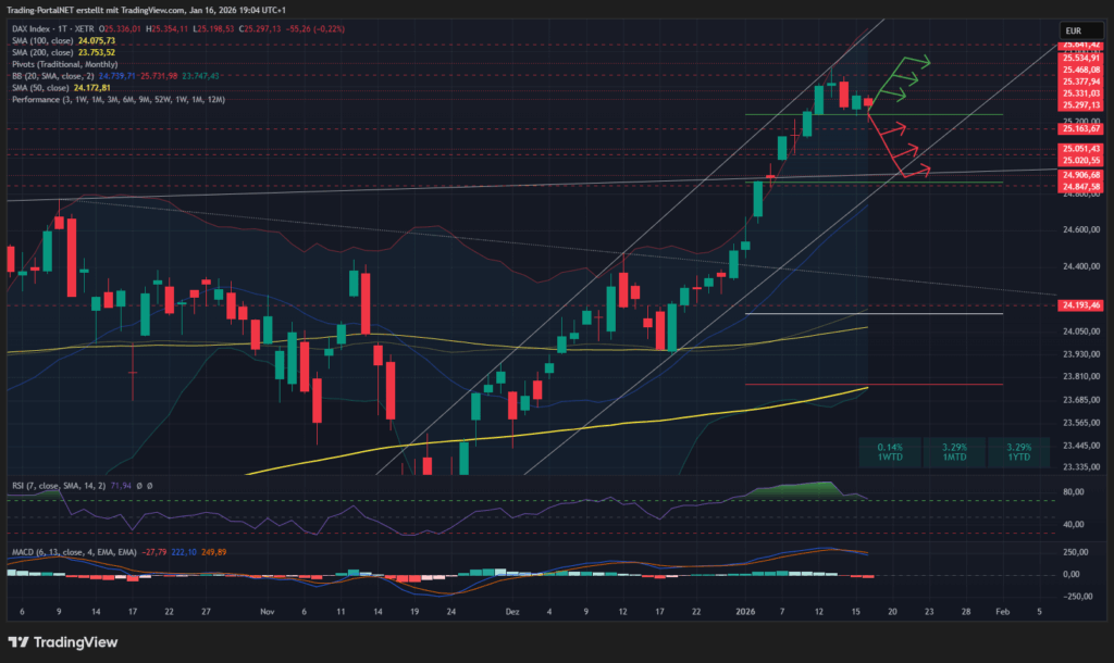 - Oberhalb bleibt die Spanne zur 24.330/.370 aktiv. Darüber rücken die 25.440/.470 in den Fokus. Im Anschluss öffnet sich die Tür in Richtung 25.530 und .600.
